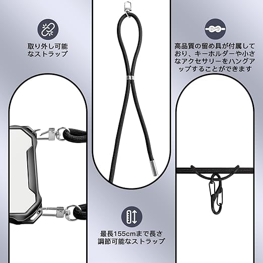 UnnFiko For iPhone 15 ケース クリア スマホケース ショルダー MagSafe対応 クリア マグネット式スマホケース アイフォン15 カバー 細いロープ 薄型 軽量 TPU 携帯ケース 紐付き ネックストラップ 斜めがけ ストラップ付き 長さ調整可能 取り外し可能 落下防止 ワイヤレス充電対応(iPhone 15,ブラック) a