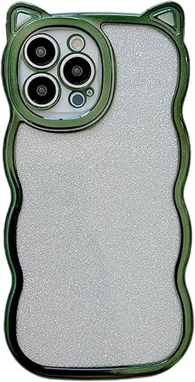 【Kunyehdo】スマホケース iPhone 15 ケース カバー 対応 メッキ 光沢 ピンク 青 紫 緑 閃粉 猫耳 猫柄 キラキラ おもしろ iPhoneケース 女 軽贅沢 かわいい 薄型 スリム 人気 おしゃれ 韓国 お洒落 立体 波形 全面保護 シリコンゴム 創意 落下防止 ソフトケース (iPhone15 ,緑) a