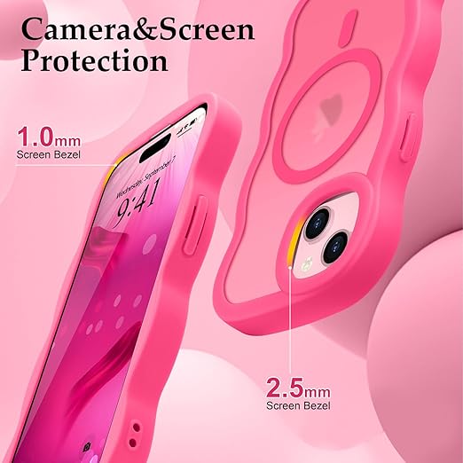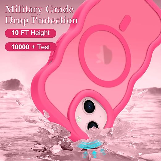 Pepmune iPhone 15 ケース MagSafe対応 ウェーブ 半透明 滑り止め おしゃれ 可愛い 韓国 耐衝撃 指紋防止 ワイヤレス充電 スマホケース ストラップホール付き(ローズレッド) a