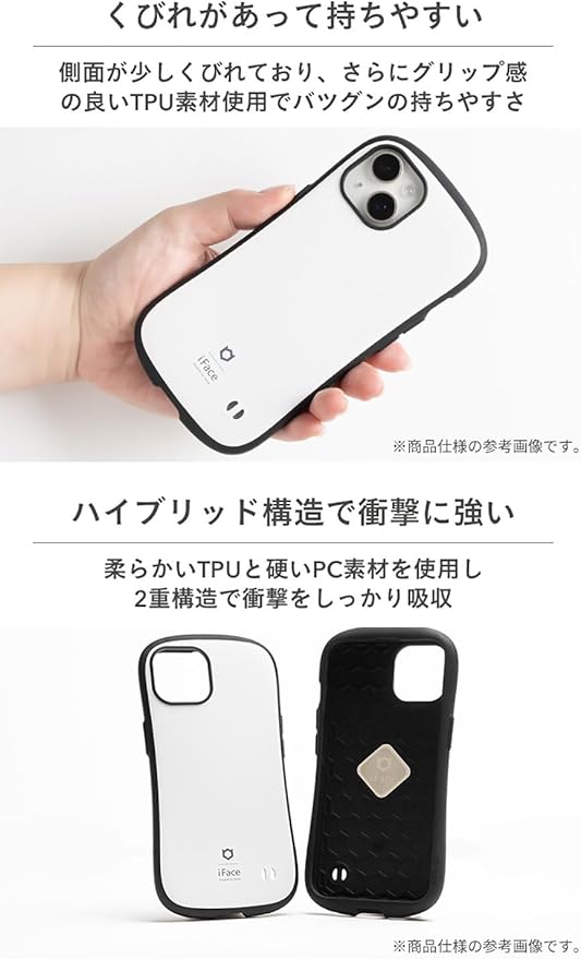 「くびれ」と「適度な厚み」で持ちやすい。ポリカーボネートとTPU、2つの素材で傷や衝撃から保護。