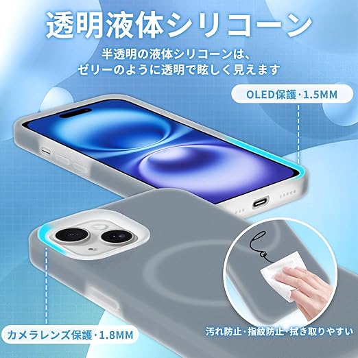 iPhone 15 ケース MagSafe対応 液体シリコン 耐衝撃 【ジェリータッチシリーズ】 いphone 15 スマホケース 5層構造 さらさら手触り [なめらかミルクシリコン] 衝撃吸収 指紋防止 アイフォン 15 カバー 超防汚性 滑り止め ワイヤレス充電対応 超軽量 薄型,グレー (ゼリーグレー) a