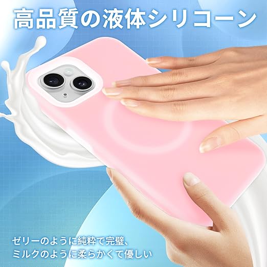 iPhone 15 ケース MagSafe対応 液体シリコン 耐衝撃 【ジェリータッチシリーズ】 いphone 15 スマホケース 5層構造 さらさら手触り [なめらかミルクシリコン] 衝撃吸収 指紋防止 アイフォン 15 カバー 超防汚性 滑り止め ワイヤレス充電対応 超軽量 薄型,ピンク (ゼリーピンク) a