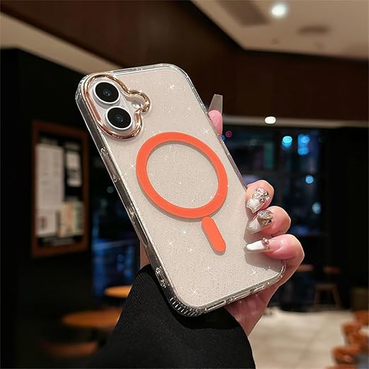 iPhone 15 専用 ケース キラキラ ラメ クリア マグセーフ対応 人気スマホケース 韓国 かわいい ワイヤレス充電対応 ストラップホール付き 綺麗 透明 シンプル c