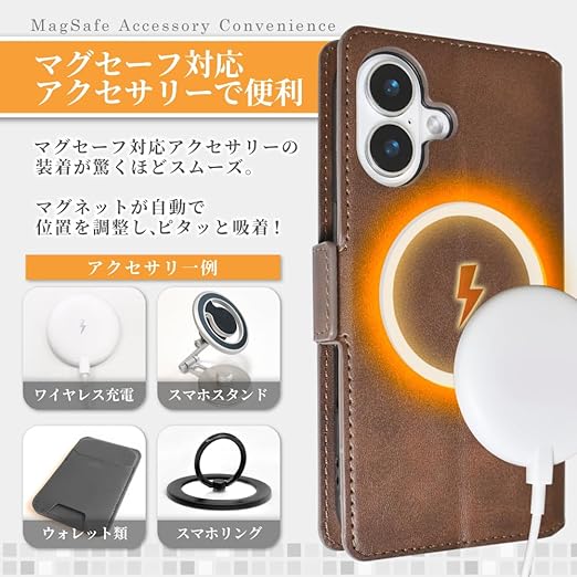 シズカウィルRe iPhone 15 ケース MagSafe対応 手帳型 カバー 本革調 スマホケース レザーケース 1個入り オリーブ a