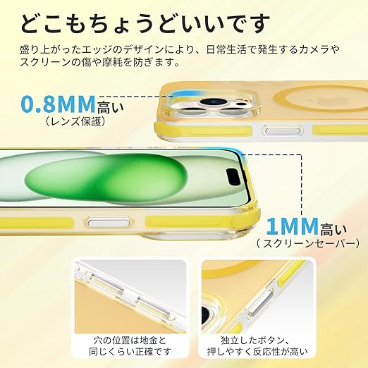 【MIIFUBOOお知らせ】対応機種:iPhone 15 Pro 用保護ケース。「カラフルキャンディシリーズ」のスマホケースは、TPUフレームと半透明のPC背面を組み合わせたデザインを採用。四隅には衝撃吸収ストリップを備え、落下時の衝撃を軽減します。独立した金属製ボタンが搭載されており、操作性が向上しています。新しいスマートフォンケースが、皆様に全く新しい体験をお届けできることを願っています。ご注文前に、必ずご希望の製品、カラー、対応機種をご確認ください。