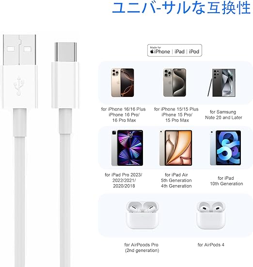 安全性と耐久性: YBMTIGICS usb a to usb cケーブルは、高品質の銅線コアを採用し、より大きな充電安定性と高効率を提供し、過充電や過熱を防ぎ、電流が安全な範囲を超えると、自動的に電源供給を遮断し、充電の安全性を保証します 。耐久性に優れ、破れにくい熱可塑性ポリウレタン(TPU)でできており、20000回以上の曲げテストされ、驚くほどの柔軟性があります。