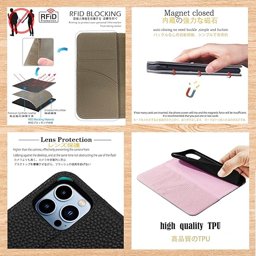 iPhone 15 Plus ケース 本革 手帳型 カバー 耐衝撃 保護 カバー 本革 内蔵マグネッ RFIDト 財布型 携帯カバー カードポケット スタンド機能 NanHou - グレー/ピンク a