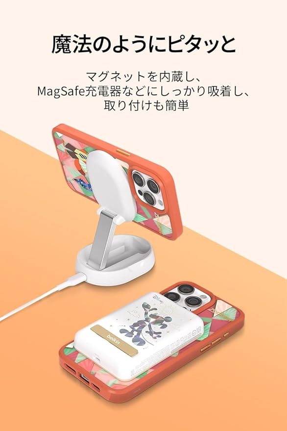 【強力マグネット搭載】ケースにマグネットを搭載し、MagSafe対応の充電器等にしっかり吸着します。