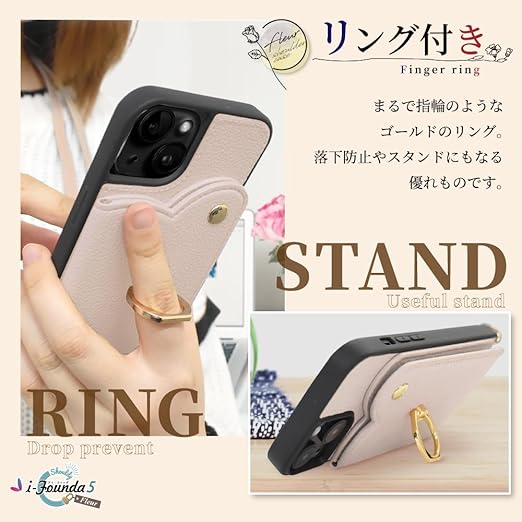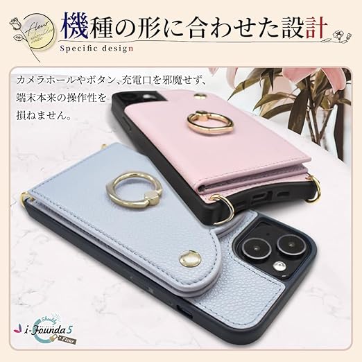 シズカウィル iPhone 16 Plus 用 ケース ショルダー カバー ショルダーストラップ アイファンデ5 ショルディー フルール アッシュローズ 1個入り a