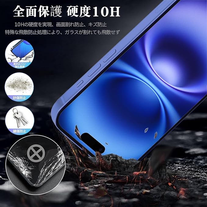 ★【高品質素材製、日本旭硝子製】一般的なガラス保護フィルムよりも耐久性に優れたハードコーティング技術により、10Hの硬度を実現。特殊な飛散防止処理によ