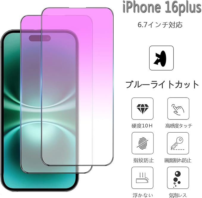 ★【対応機種】iPhone 16 plus(アイフォン 16 プラス)用。同梱物:ブルーライトカット強化ガラスフィルム2枚、レンズ保護フィルム 2枚 、ガイド枠1個 、取扱説明書。【品質保証】製品に初期の欠陥が見つかった場合は、注文履歴画面より出品者にご連絡いただき、お客様からのお問い合わせ内容に応じて代替品交換(一回無料で交換)・返金可能です。