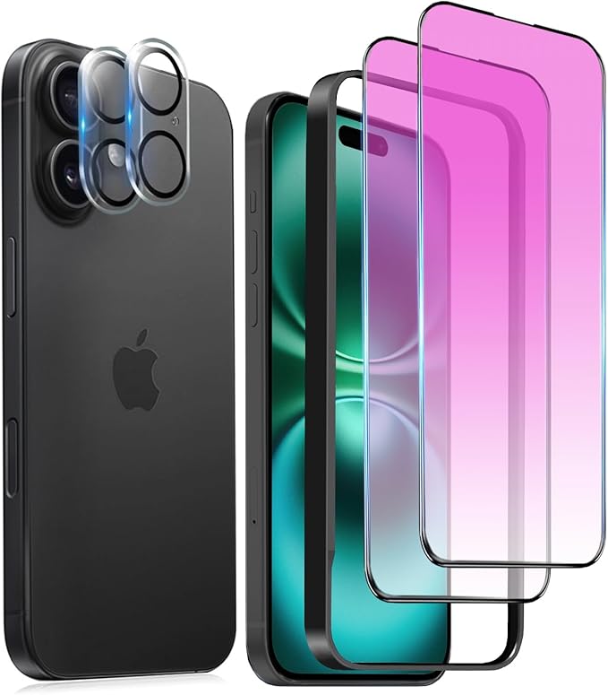 DZHFU 【4枚入り】iPhone 16 plus 強化ガラスフィルム 6.7インチ ブルーライトカット 全面保護フィルム 目の疲れを軽減 硬度10H 滑らかなタッチ操作 指紋付着防止 気泡防止 ガイド枠付き 貼り付けは簡単 【アイフォン16 plus 強化ガラスフィルム(2枚入り)+レンズ保護フィルム (2枚入り)】 a