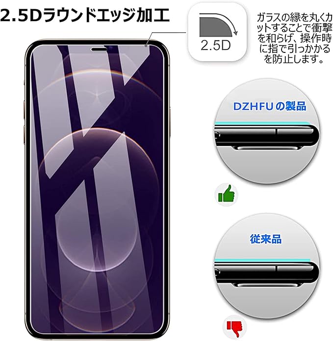 【対象機種】iPhone 12 pro (6.1インチ)ブルーライトカット用強化ガラスフィルム 精密な丸みを帯びたエッジ加工を採用し、引っかかることがなく、側面からのショックを軽減し、快適でなめらかな質感をもたらし、画面全体を保護できる。