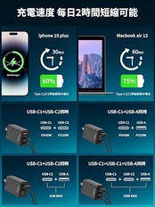 【新時代の多機能デザインで、充電の心配ゼロ】革新的なデザインの充電器は、2つのType-Cポートと1つのUSB-Aポートを搭載し、様々なデバイスの充電ニーズに完璧に対応