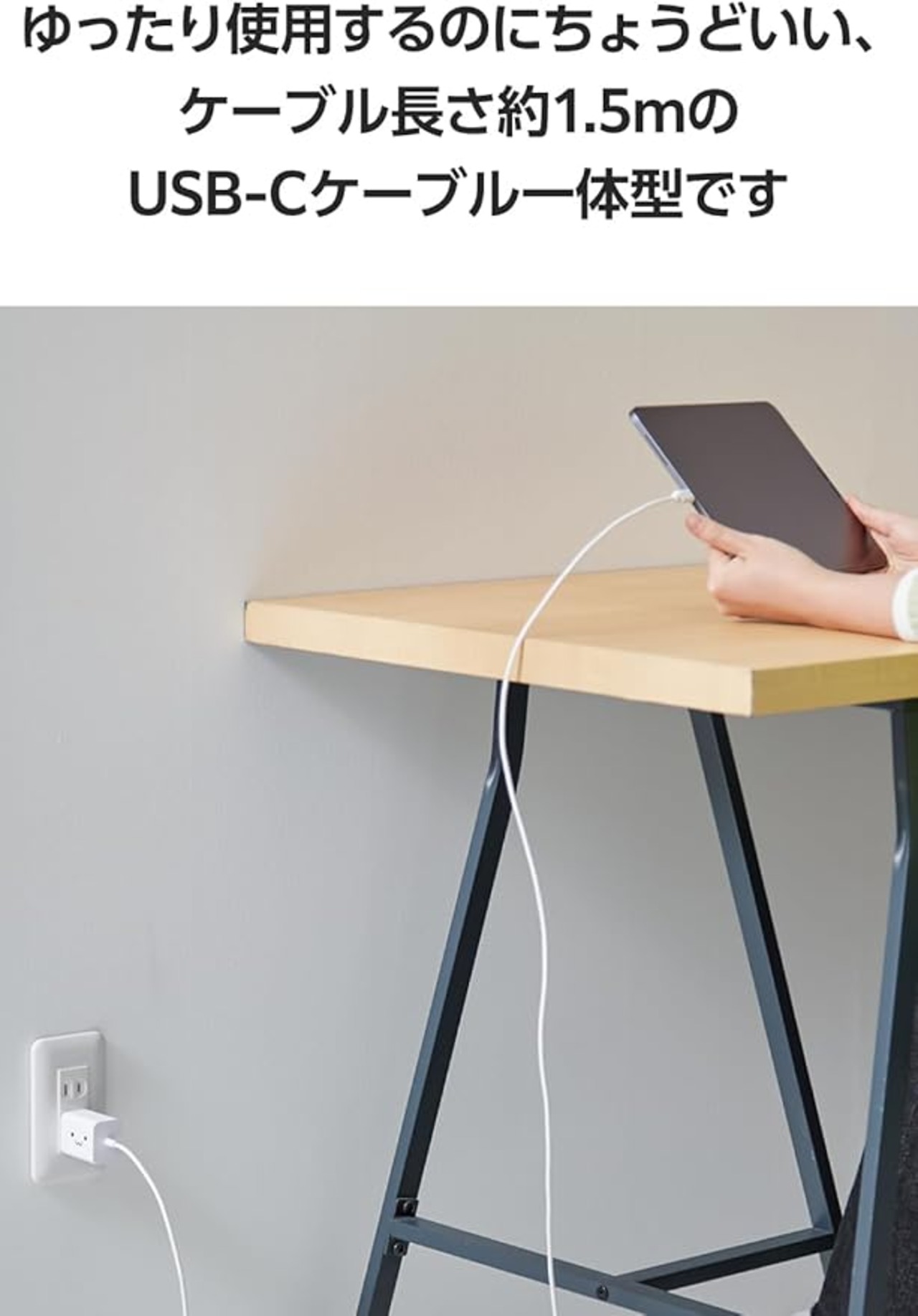 USB Power Deliveryに対応したUSB Type-C(TM)プラグを搭載し、対応するスマートフォン、タブレットなどを充電できるUSB AC充電器です。