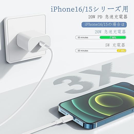 【iPhone 急速充電器】当社のUSB-C充電器はPower Delivery3.0の充電技術を採用して、純正の充電アダプター3倍早く急速充電できます。テスト済み:16/15へ僅か30分で60%までに充電できます。Quick Charge 4.0/3.0/2.0急速充電と互換性があります。「ご注意」本製品はUSB-C&USB-C ケーブルとのセットです。