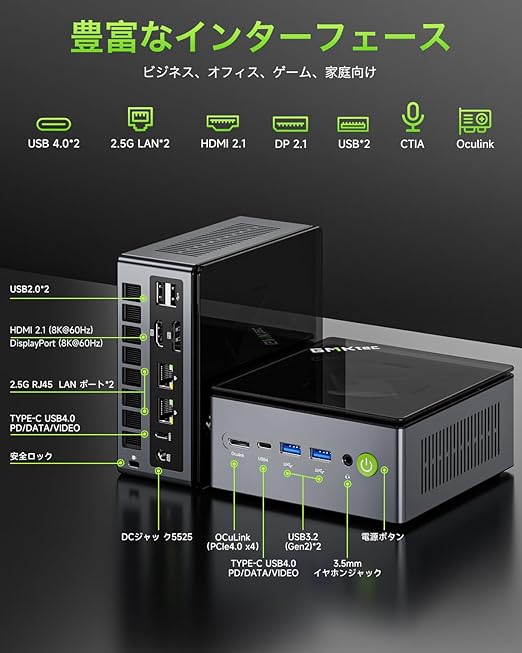 GMKtec ミニpc AMD Ryzen 7 PRO 6850H, 32GB RAM 1TB SSD (8C/16T Max. 4.70GHz)DDR5 Windows 11 pro Mini PC 2*SO-DIMM, デュアル2.5G LAN, WIFI6, HDMI 2.1(8K@60Hz) USB4.0*2, 4画面出力,ゲーミング ミニパソコン Nucbox M7 a