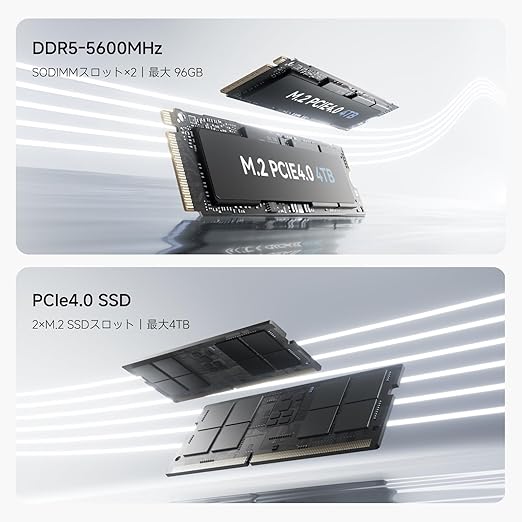 【優れたパフォーマンス】MINISFORUM UM870 Slim ミニPCは、CPUにAMD Ryzen 7 8745Hを搭載し、Zen3アーキテクチャに基づいており、8コア/16スレッド、最大コア周波数は4.9Ghzに達します。GPUにRDNA 3アーキテクチャと4nm製造プロセスに基づいたAMD Radeon 780M を採用します。一般家庭/日常オフィス/軽くゲーミングのために設計されています。