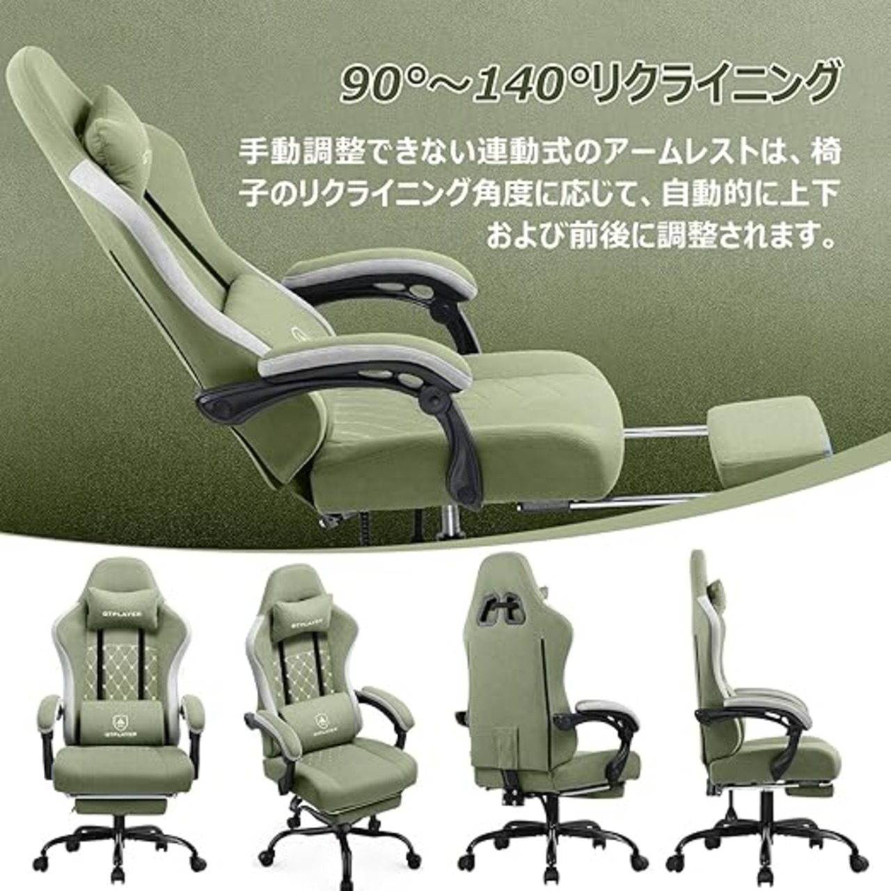 GTPLAYER ゲーミングチェア ファブリック オットマン 椅子 イス テレワーク 腰痛対策 pcチェア デスクチェア 蒸れない ソファーの座り心地 【安心の非再生ウレタン採用】【ポケットコイル採用】 『ダイア調に蝶の刺繍のデザイン』LR002-GREEN a