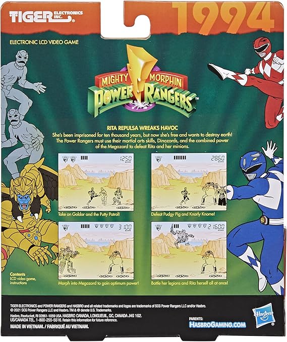 レトロにインスパイアされたビデオゲームアクション: このレトロにインスパイアされたTiger Electronics Mighty Morphin Power Rangersのハンドヘルドビデオゲームで、1990年代に復活しましょう。 対象年齢:8歳以上。