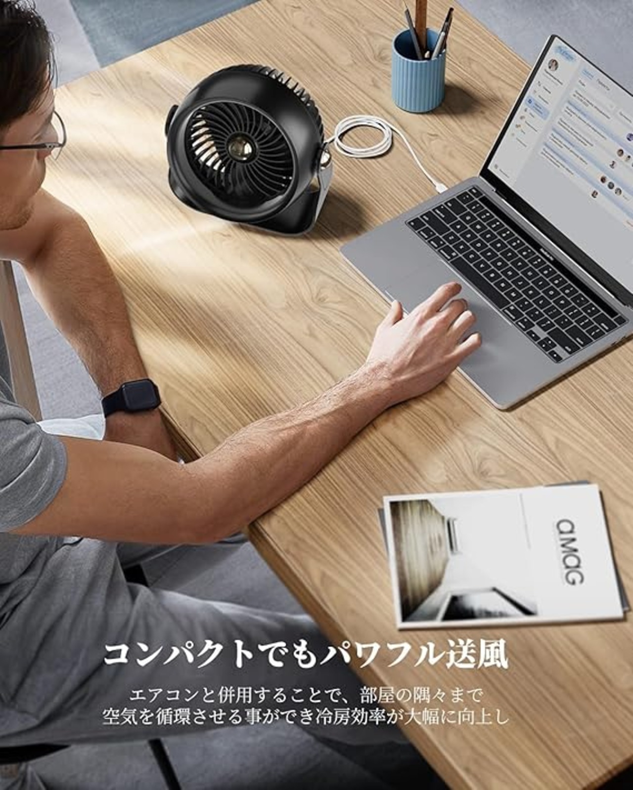 ️【6000mAh大容量&20時間連続使用】安全性の高いリチウムイオンポリマー6000mAhバッテリーを搭載し、弱モードで最大20時間の連続使用が可能。夏にはエアコンと併用すれば冷房効率が上がるし、冷たい空気をお部屋全体に素早く行き渡らせ、ムラなく均一な室温をキープ。