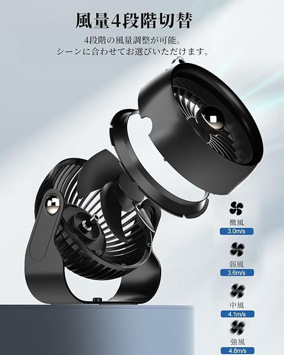 ️【強力風量&超静音24dB&4段階調節】独自設計のファンブレードが生み出す強力な風(最大4m到達)と、270°広角首振りで部屋全体にムラのない空気循環を実現。最新ブラシレスモーター採用で動作音わずか24dB(図書館並みの静かさ)
