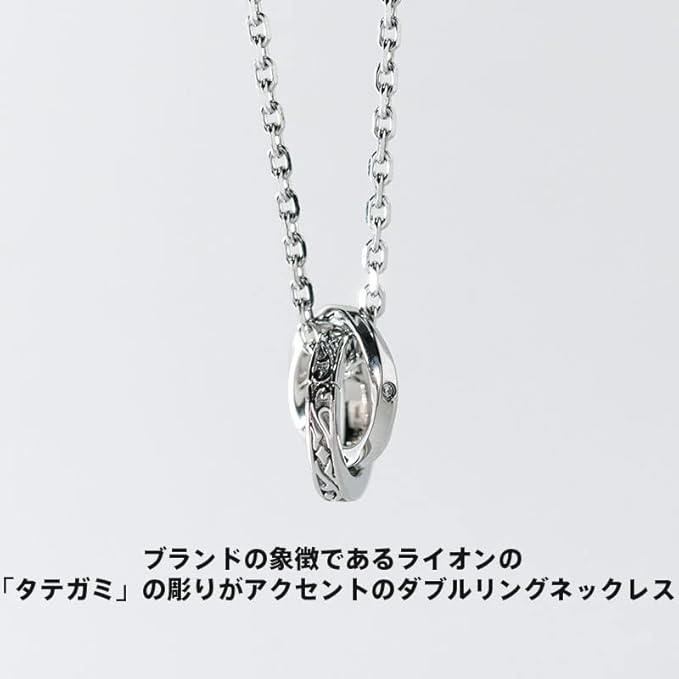 [ライオンハート] ラッピング済 別注 トライ ネックレス タテガミ ダブルリング サージカルステンレス クリアジルコニア 金属アレルギー対応 別注ポーチ付き メンズ ブランド