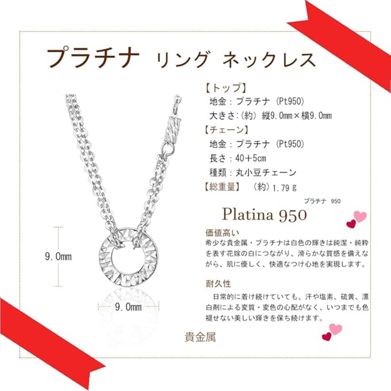 [FANCIME] ネックレス レディース リング ペンダント 二連 チェーン プラチナ K18ゴールド LOVE 刻印 円型 Pt950 18金 ジュエリー クリスマス 誕生日 記念日 プレゼント ギフトラッピング付 a