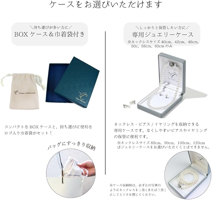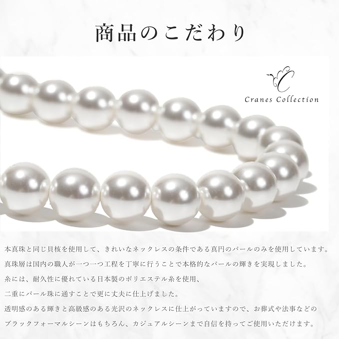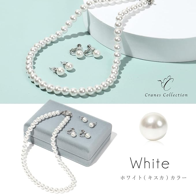 [CRANES COLLECTION] 5年保証 パール ネックレス イヤリングセット 真珠 日本製 天然貝パール 8mm珠 自社生産 10サイズ 選べるケース ホワイト グレー ブラック