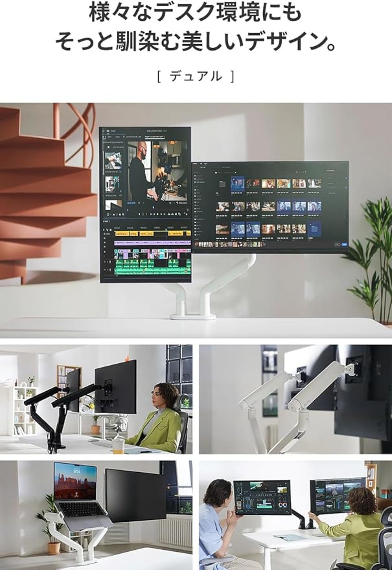 【 高い安定性を生む、ダブルメカニカルスプリング式 】上下左右に頻繁にディスプレイ位置を調整する方にもオススメです。メカニカルスプリング式をさらにパワーアップ。ダブルのバネで更に繊細