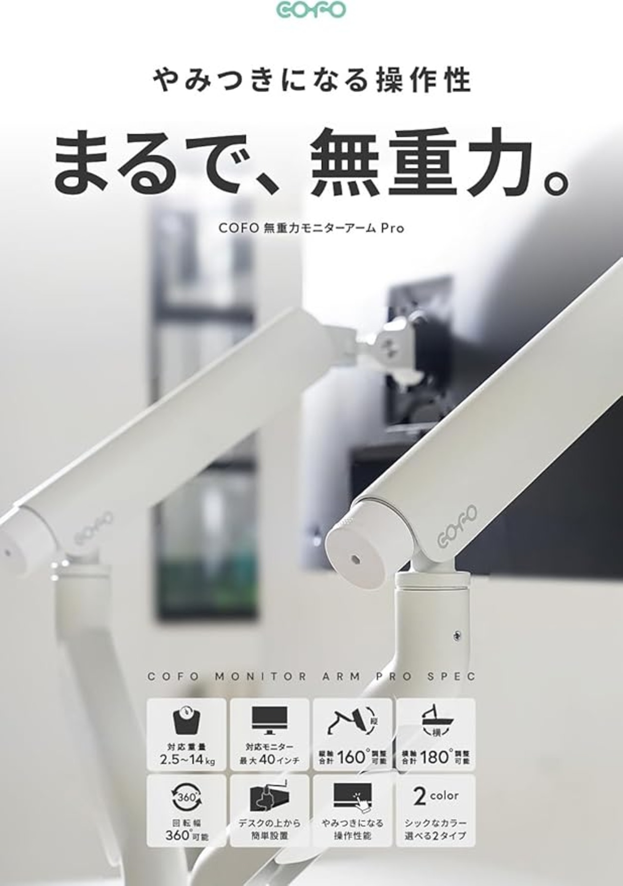 COFO 無重力モニターアーム Pro デュアル 17〜40インチ、2.5〜14kg対応 角度/高さ調整可能 ダブルメカニカルスプリング式 デスク設置用 スチール アルミ合金製 2画面 (ブラック) a