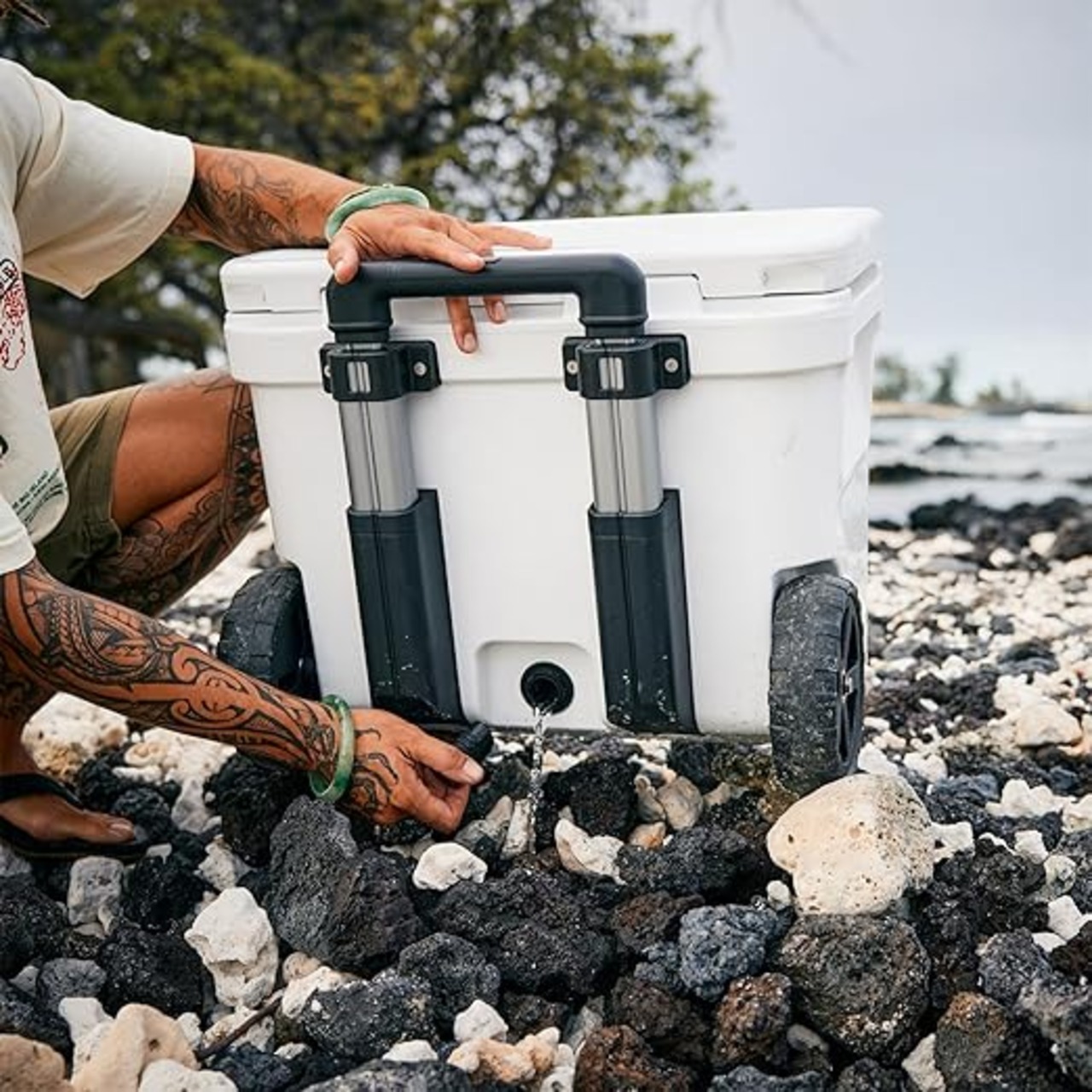 Roadie 32 Wheeled Coolerは、操作性、耐久性、小型車両のトランクと互換性があり、テールゲートの群衆、長いロードトリップ、週末のトーナメントをナビゲートする準備ができています。