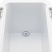 機能および付属パーツ:取り外し可能フタ、ハンドル、ショルダーベルト、水栓、滑り止めゴム、トレー