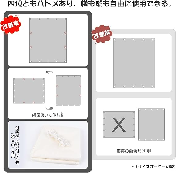 【横縦使用可】シェードは横も縦もハトメあり、横も縦も使用可能です。