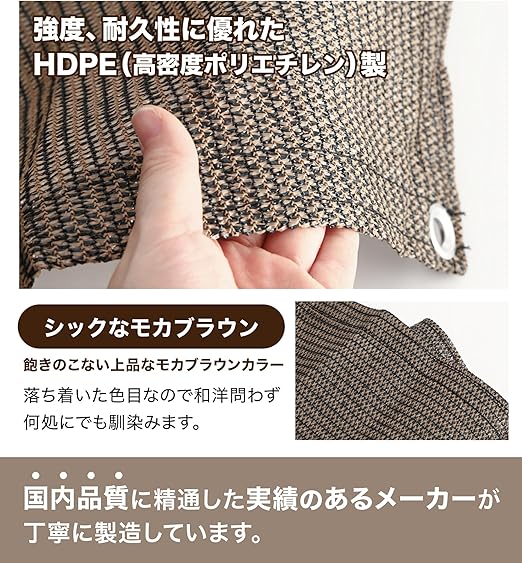 Daddy's Weekend サンシェード モカブラウン 通気タイプ ベランダ 庭 UVカット 日よけシェード 付け紐4本付属 紫外線カット 【日本ブランド】 (1.8M×1.8M) a