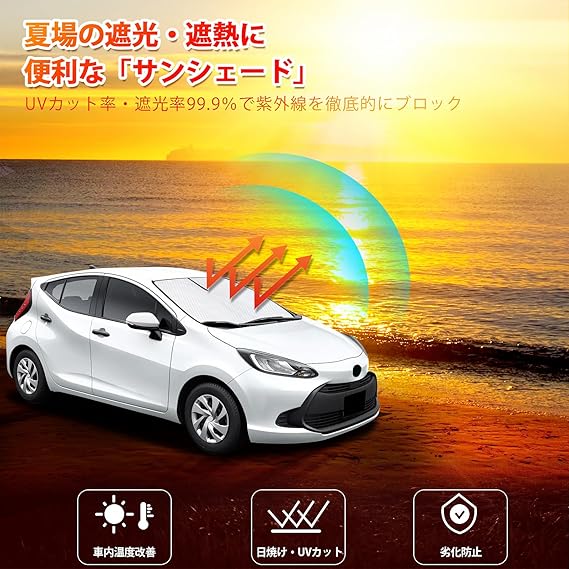 新型 アクア MX系 MXPK10/11/15/16 サンシェード AQUA 車種専用 フロントガラス用 サンシェード カーシェード シェードカーテン UVカット 日よけ 遮光 断熱 マルチサンシェード 紫外線カット 高密度生地 日差し 折り畳み式 車中泊 プライバシー保護 アクセサリー カスタム パーツ a