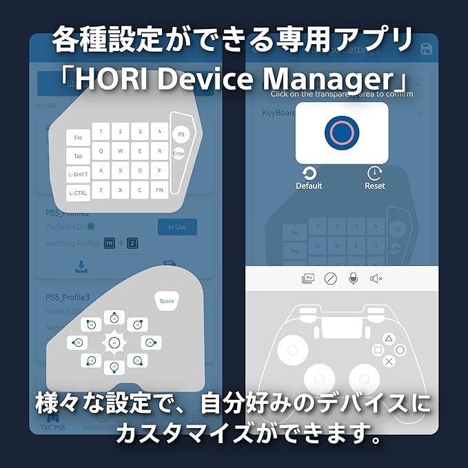PlayStation5 / PlayStation4 / PC 対応のキーボードデバイス ・本体背面のスライドスイッチを切り替えることで、PlayStation5、PlayStation4、PCなどのハードに合わせてご使用できます。