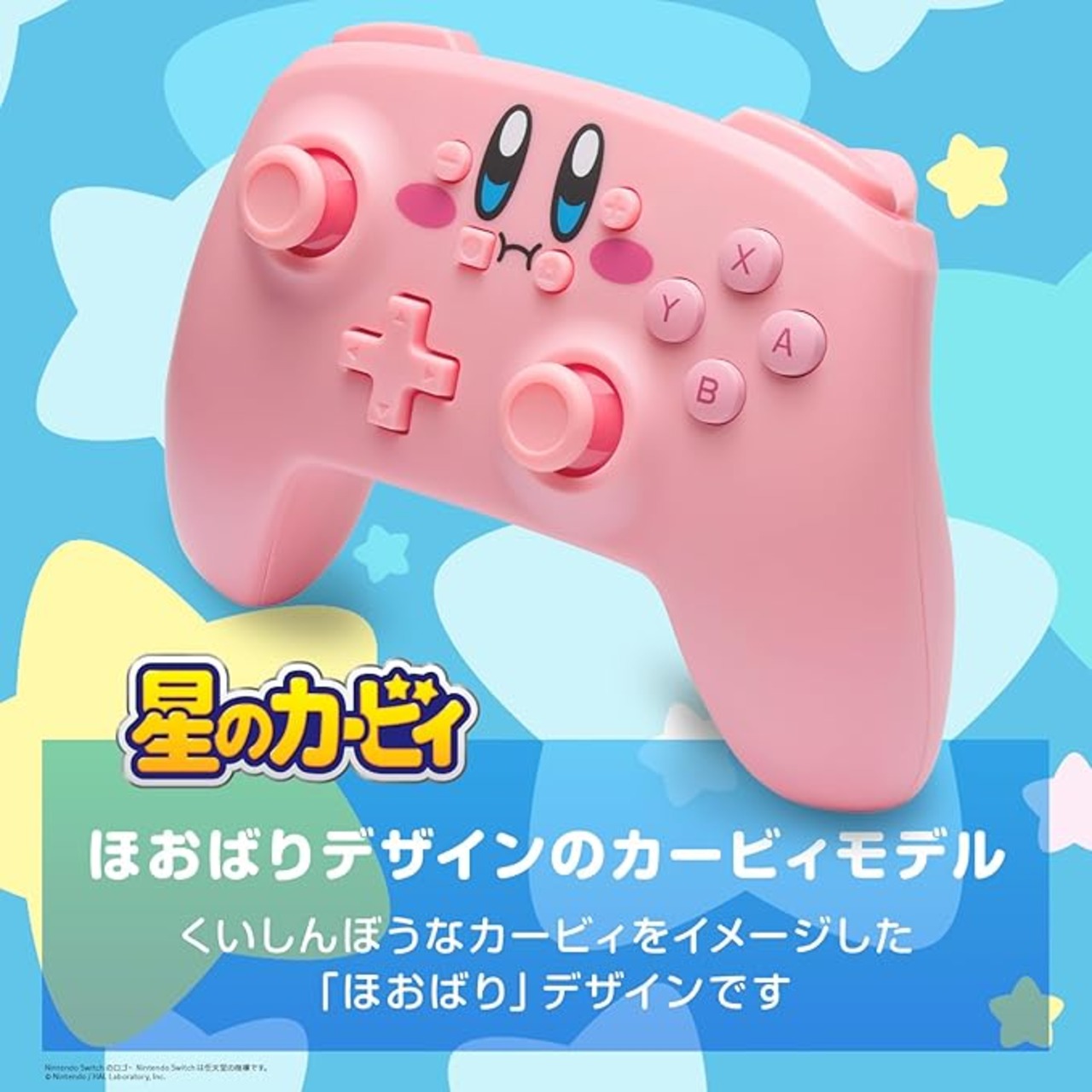 カービィみたいなコントローラー!?:くいしんぼうなカービィをイメージした「ほおばり」デザイン。まるでカービィがコントローラーそのものになったかのように見える可愛らしい仕上がり