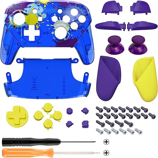 スイッチ プロコン本体ではなく、eXtremeRateフェースプレートバックプレートハンドルswitch プロコンに対応用、パターン柄プロコン switchに対応用DIY交換用グリップハウジングケースカバー【スプラッターペイント】 a
