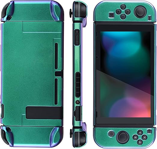 eXtremeRate PlayVital Switchコンソールに対応するバックカバー、分割デザインでNS Joyconハンドヘルド用保護ケース(ハード)、Switchドックに対応する保護ケース(ハード)【カメレオングリーンパープル】 a