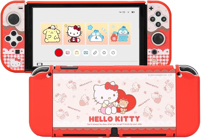 Kuitmor SwitchOLED対応カバー SwicthOLED対応 スイッチOLED対応 switchOLEDカバー 薄型 傷防止 PC製 耐衝撃 全面保護 汚れ防止 取り外し簡単 誕生日 プレゼント 猫ちゃん レッド a