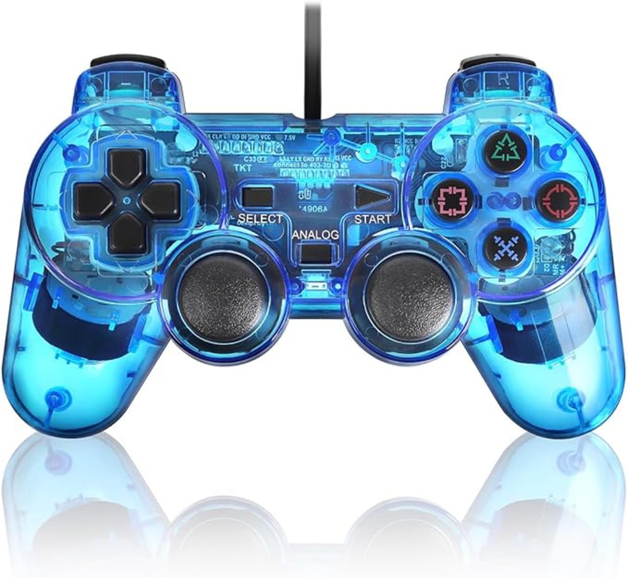 【K&SGAMER】PS2 有線 コントローラー プレイステーション2 対応 アナログコントローラ (クリアブルー) a
