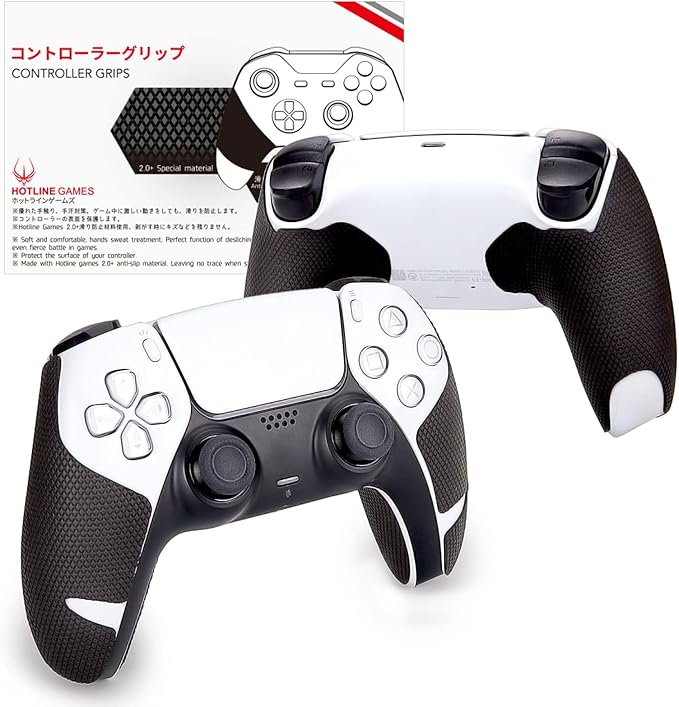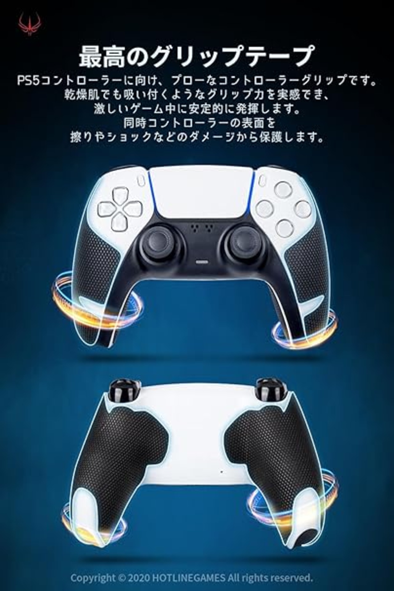【グリップ力進化&全面保護】PlayStation5コントローラーに向け、プローなコントローラーグリップシールです。HotlineGames独自の0.6mm極薄材料を採用しており、グリップ力を大幅に強化し、乾燥肌でも吸い付くようなグリップ力を実感でき、激しいゲーム中でも安定的に発揮します。傷きつやすい部分をカバーすることで、ご愛用のコントローラーを擦りなどダメージから保護します。【商品の紹介また使用方法動画はYouTubeで「Hotline Games PS5」を検索】