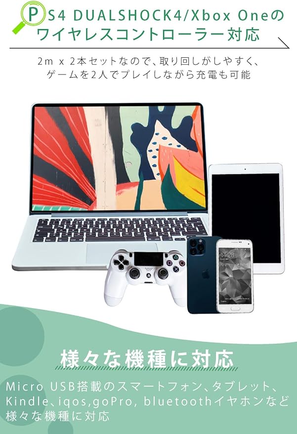 PS4 DUALSHOCK4/Xbox Oneのワイヤレスコントローラー対応 : 長さが2mと長く、プレイステーションやXboxなどのコントローラーを充電しながらプレイ可能 純正 以上の性能を実現