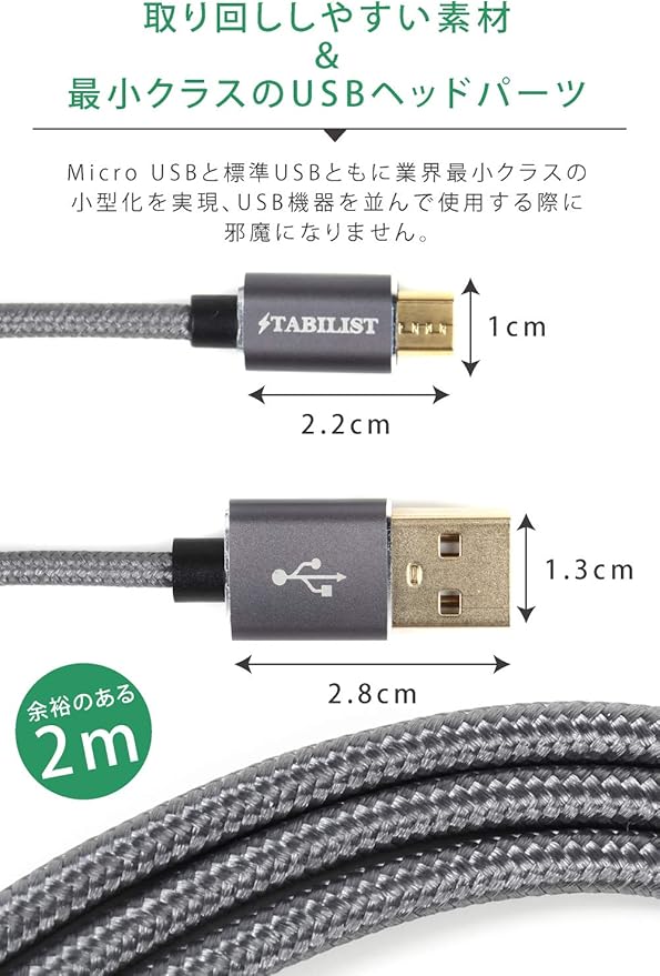 卸を通さないことによりリーズナブルな価格を実現しました 長さ: 2m x 2本組 USBA (標準USB) to Micro USB ケーブル 金メッキ加工 急速充電 PS4 Xbox Oneなどのコントローラー対応