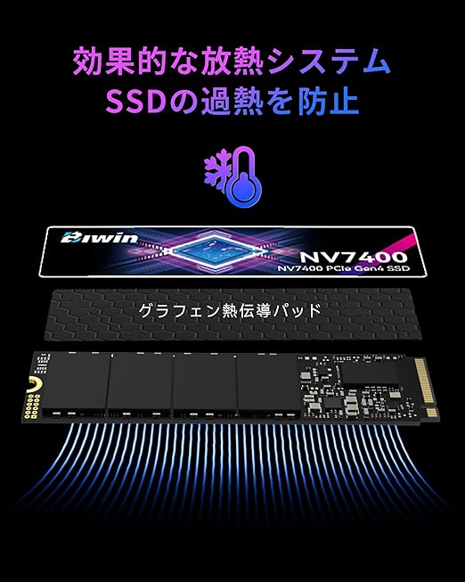 Biwin NV7400 2TB SSD NVMe2.0 M.2 Type 2280 PCIe Gen4×4 最大読込:7450MB/s (R:7450MB/s、W:6500MB/s) 内蔵SSD 高耐久 PS5/PS5 Pro動作確認済み メーカー5年保証 a