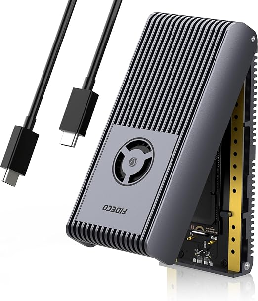 FIDECO 40Gbps M.2 NVMeエンクロージャ M.2 SSD 外付けケース 超高速 冷却ファン付きUSB4 NVMe SSDエンクロージャ UASPとTRIMをサポート USB4/3.2/3.1/3.0と互換性あり フルアルミ合金ボディ サンドイッチスタイルデザイン a
