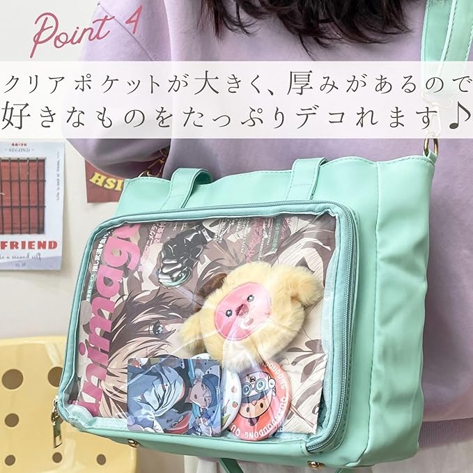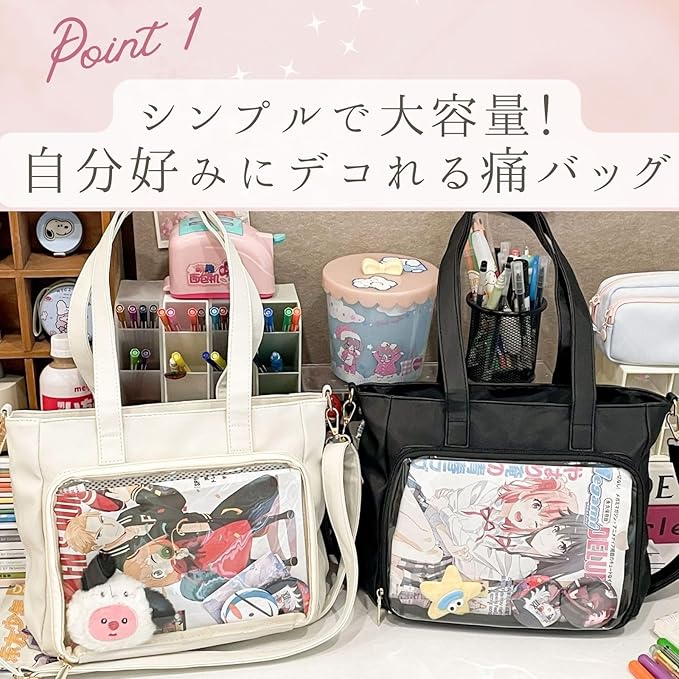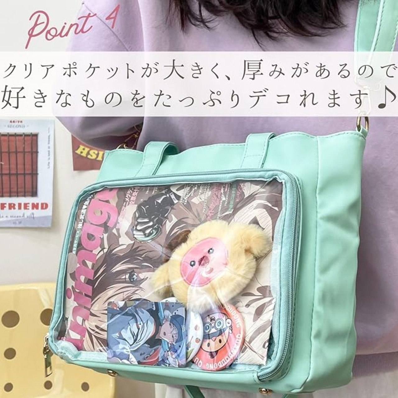 [ハルジオ] 痛バッグ ショルダー 痛バ トート 推し活バッグ ショルダーバッグ トートバッグ ハンドバッグ 2WAY 痛バック 可愛い いたばっく いたば 推し活 バッグ グッズ ぬいぐるみ 鞄 黒 白 紺 緑 紫 人気 シート 付属 おしゃれ かわいい a