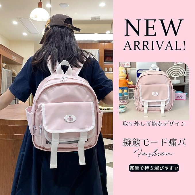 [Manatsulife] 痛バッグ 痛バ 痛リュック ミニリュック バックパック レディース 推し活バッグ 推し活リュック デコバッグ 可愛い オタ活 軽量 可動式透明窓 フロントパーツ着脱可能 TB06 d