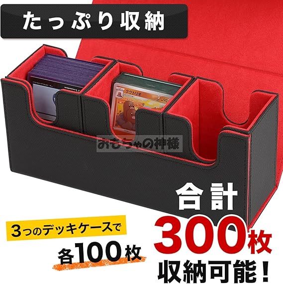 おもちゃの神様 トレカ デッキケース マグネットで取り外し可能 カードケース トレーディングカード レザー カードケース ホルダー ストレージ (ダイス入れなし(ブラック&レッド) a
